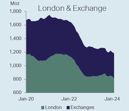 O estoque total de prata da London Bullion Market Association (LBMA) diminuiu 30% em relação ao seu pico em 2021: