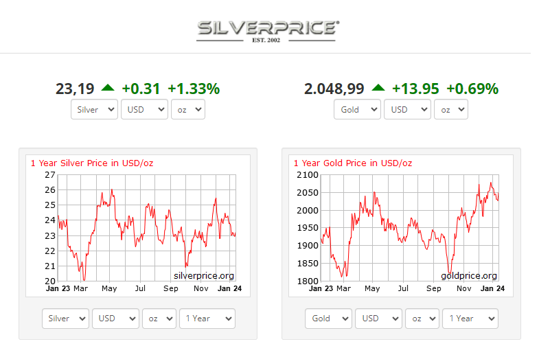 Como 2024 está apenas começando, acreditamos firmemente que a prata tem tudo o que precisa para encenar uma ruptura secular no início de 2024, talvez até a curto prazo. Definimos curto prazo como 3 semanas a 3 meses. Esperamos que a prata confirme seu rompimento na primeira parte de 2024. Esperamos ansiosamente que a prata ultrapasse 26 USD/oz, o que abrirá a porta para ultrapassar 28 e ir em linha reta para 34 USD/oz. (fonte)