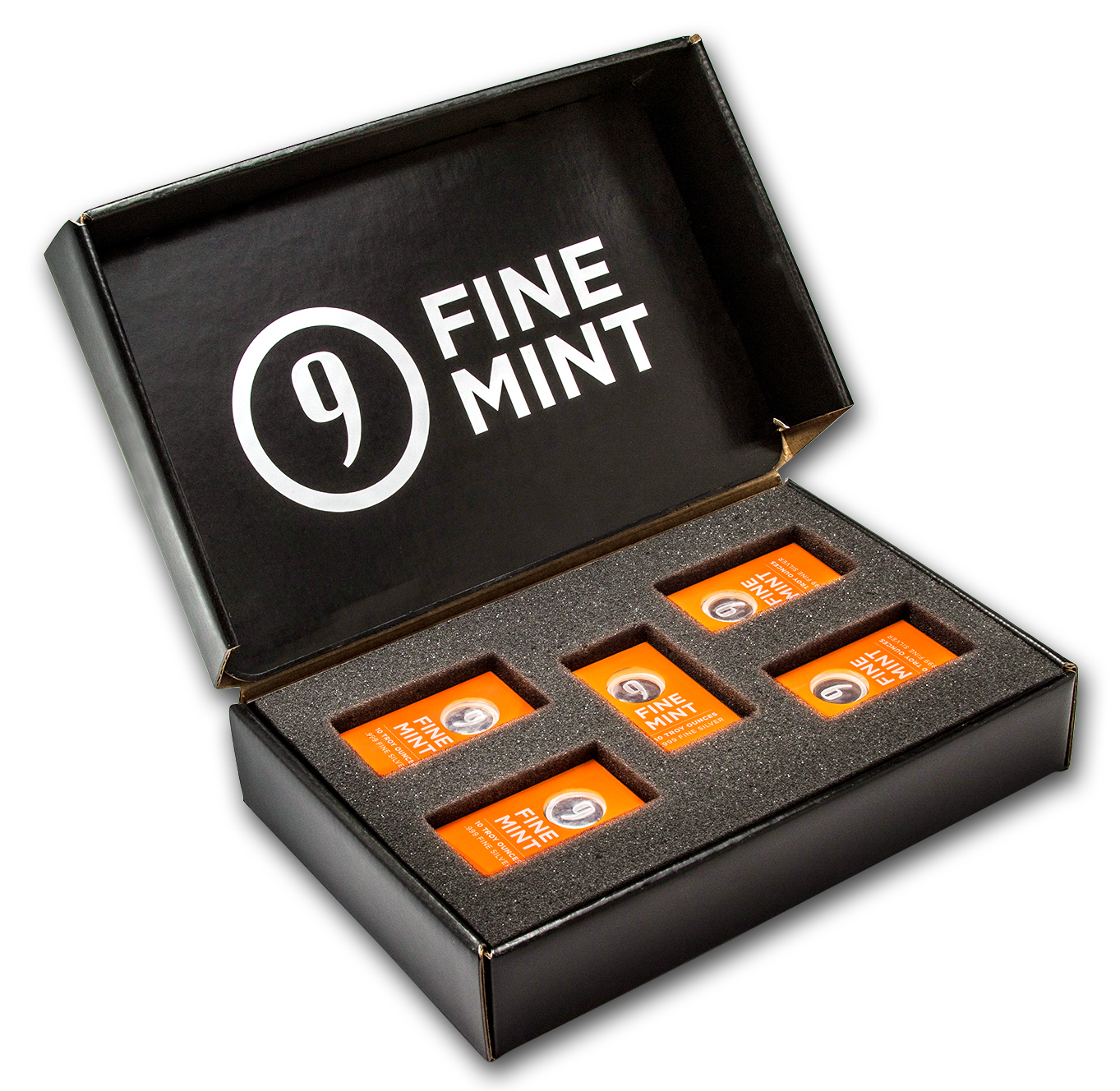 Todos as barras 9Fine Mint são feitas inteiramente nos Estados Unidos, desde o design até a cunhagem e a embalagem. A barra de prata 10 oz 9Fine Mint possui 311 gramas de prata fina 99.9% e é altamente acessível, dando-lhe o melhor em qualidade e apresentação com um menor custo. Seu design impressionante é embalado lindamente em um plástico premium que ajuda a proteger a barra, permitindo que seu investimento continue brilhando nos próximos anos.