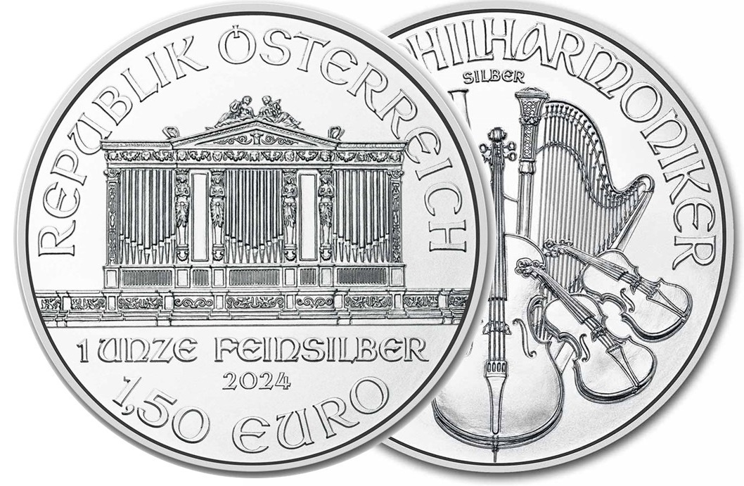 As moedas filarmônicas de prata austríacas são as mais populares da Europa, explodindo de 7,7 milhões de moedas vendidas após a sua estreia em 2008 para 17,8 milhões de moedas no seu pico em 2011. Essas moedas têm um valor nominal em euros, mas são apenas consideradas de valor legal na Áustria.
