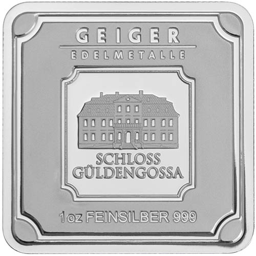 Cada barra de 1 oz Geiger é composta de uma onça troy (31,1 g) de prata pura .999. Os clientes irão notar o extraordinário detalhe do Schloss Guldengossa, um castelo barroco localizado perto de Leipzig, na Alemanha. O castelo é apresentado com considerável arte evidenciada pelo detalhe minucioso das janelas e alvenaria da estrutura. Em termos de arte e de alta qualidade, esta barra de prata é ideal para se ter como investimento.