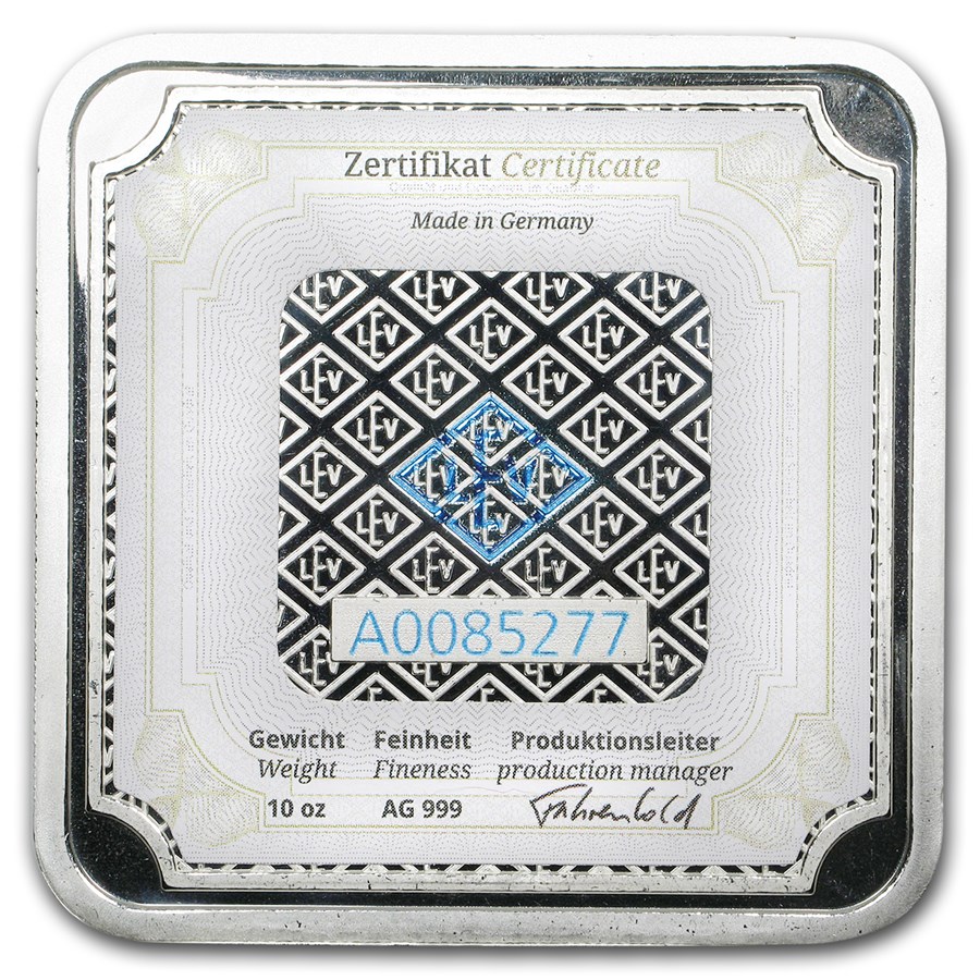 Produzidas pela famosa fundição alemã Geiger Edelmetalle, essas barras de prata são altamente detalhadas e projetadas com imagens requintadas. Esse lingote de prata pura é uma maneira excelente de diversificar seu portfolio de riqueza tangível. Estas belas barras são cada vez mais popular entre os investidores, bem como colecionadores de peças de prata. É um dos modelos mais seguros contra falsificações. Sob luz ultravioleta a barra mostra seu número de série e o logotipo LEV.