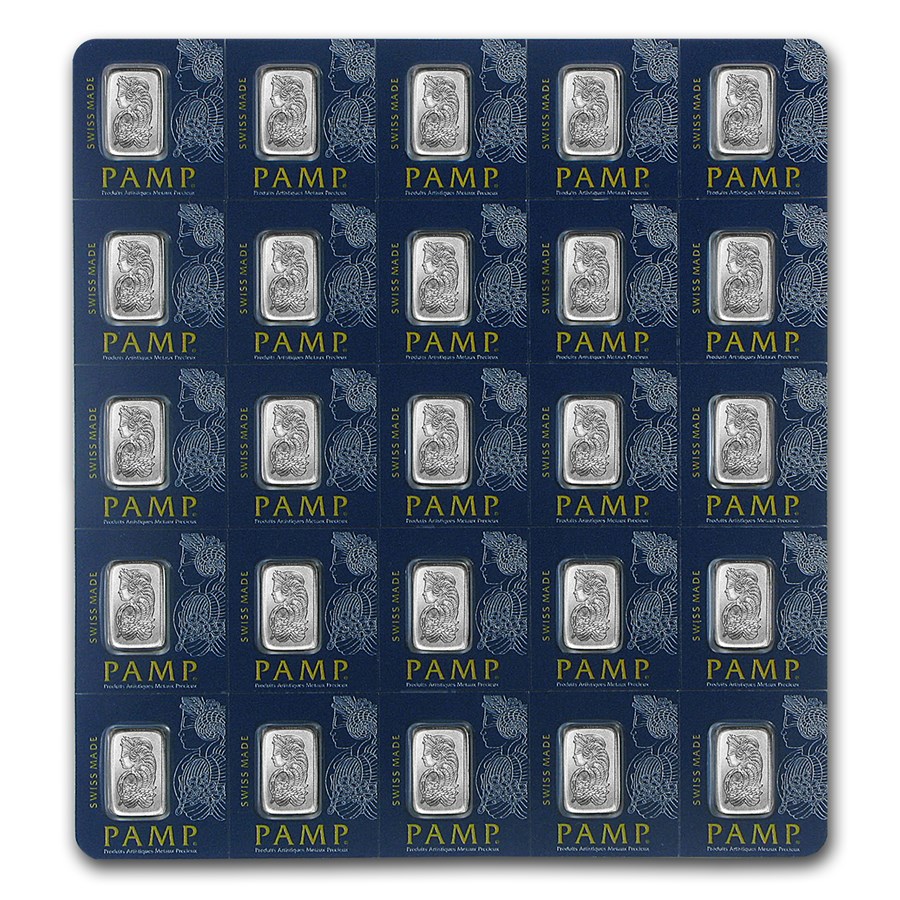 Contém 25 x 1 grama (0,80375 onças) de Platina fina 0,9995.