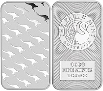 A Perth Mint é conhecida por emitir algumas das moedas de ouro mais bonitas e procuradas do mundo. No entanto, ela também produz uma ampla gama de barras de ouro e prata para venda on-line através de revendedores autorizados. A barra de 1 onça Australian Kangaroo com prata pura .9999 combina o famoso marsupial e o design clássico da barra da Perth Mint com um cisne.