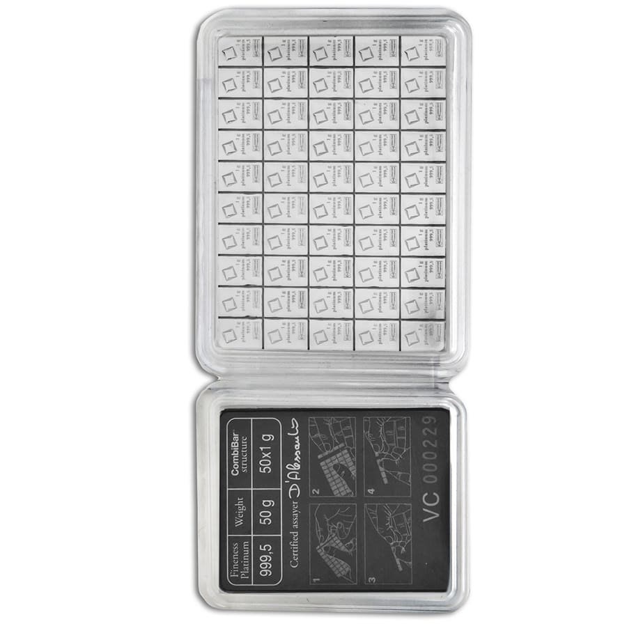 barra de platina Valcambi Suisse 50 x 1 g certificada